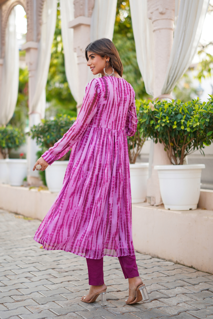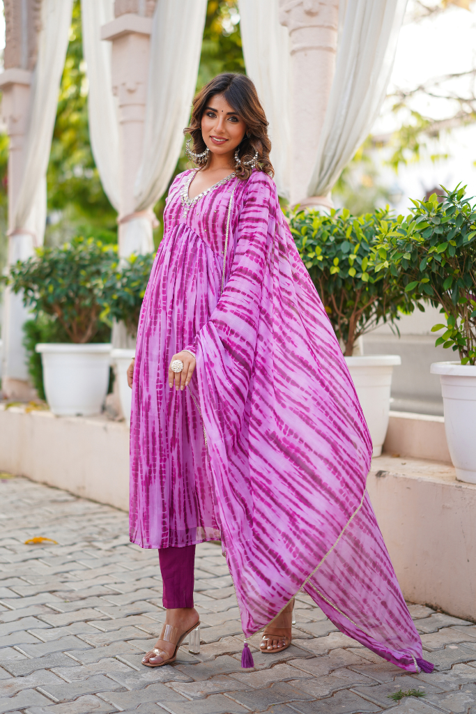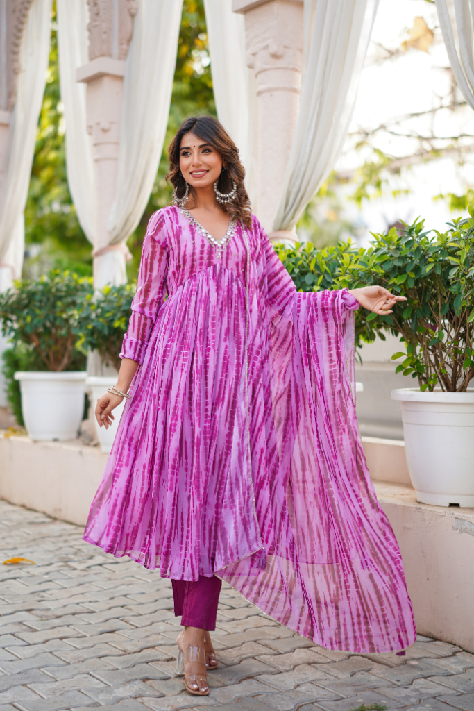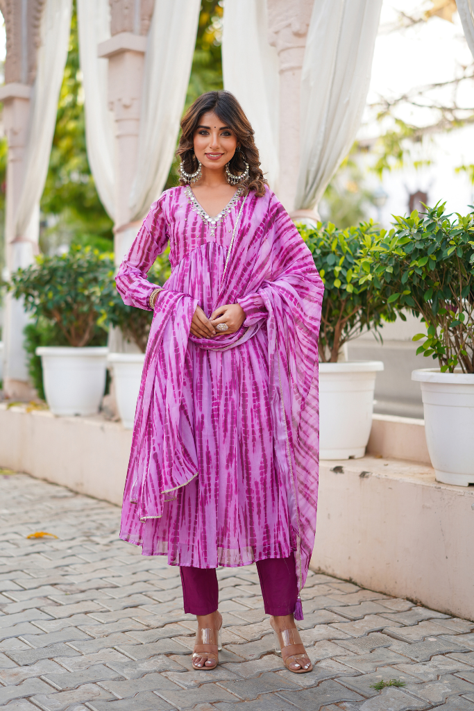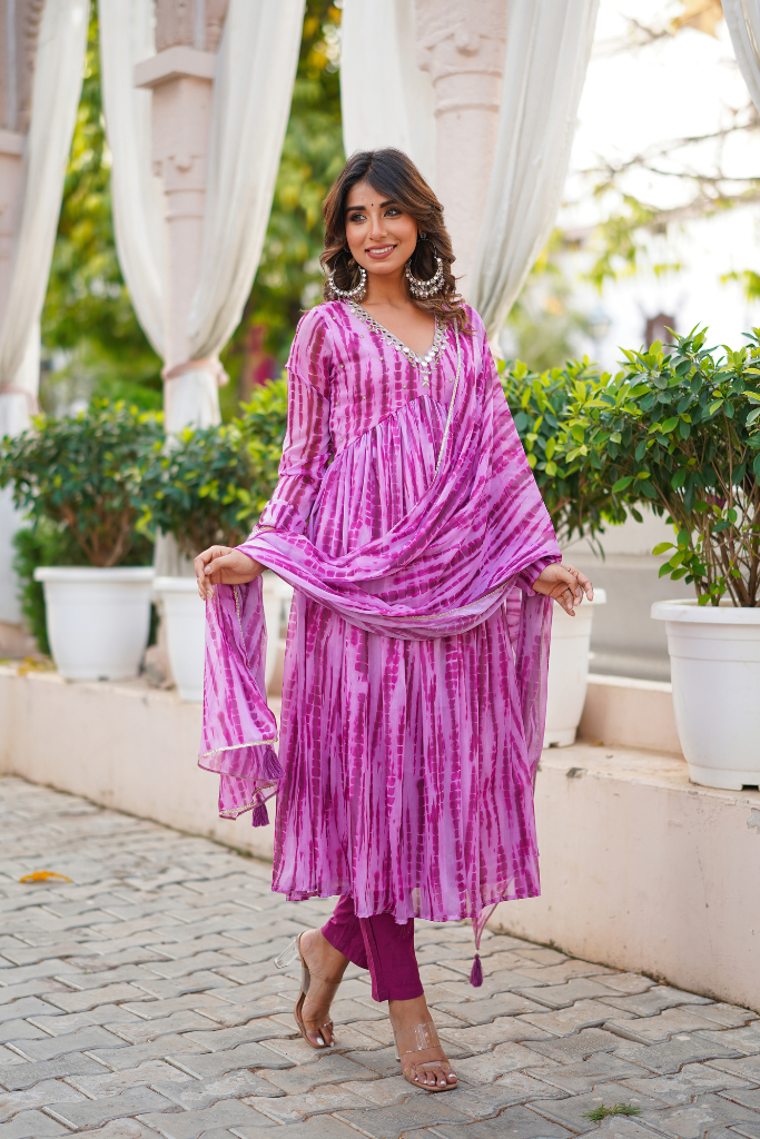 Look no further than our lit Shibori print suit set, complete with mirror handwork deets
